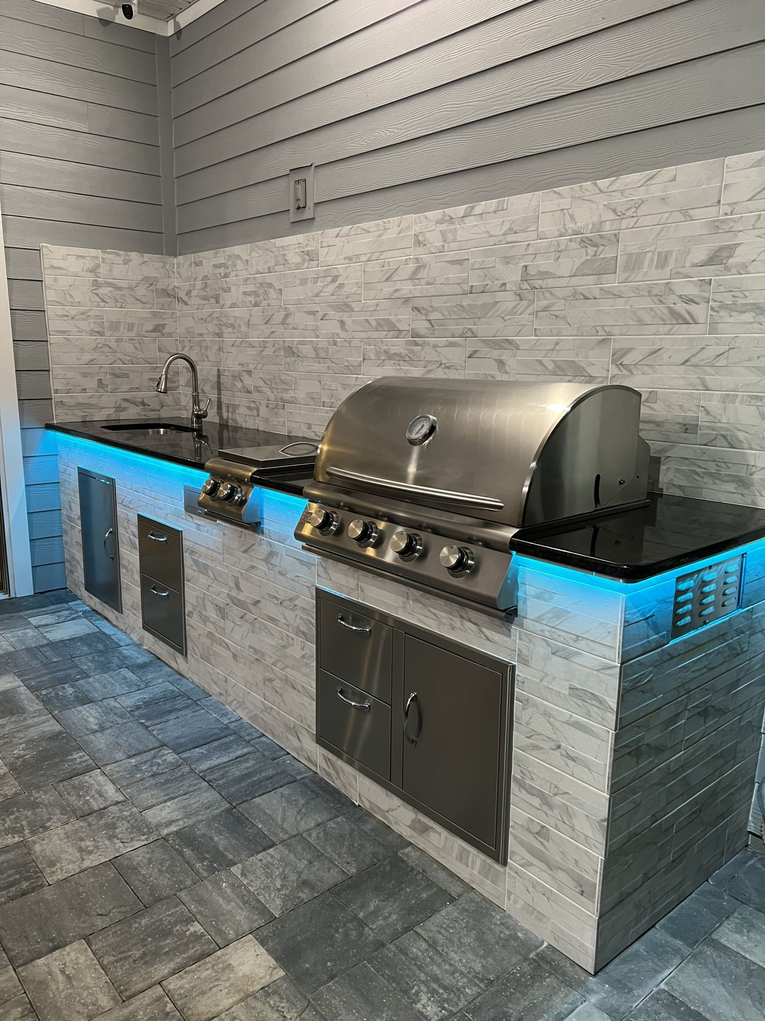 Transform your backyard into a personal paradise with our outdoor kitchens, custom-made to fit your specifications.
